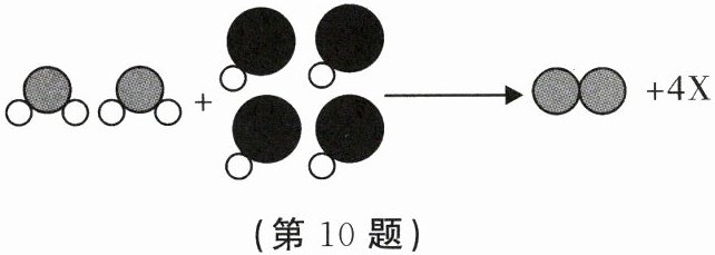 10. 如图为某反应的部分微观示意图,其中不同的球代表不同元素的原子。下列说法正确的是(