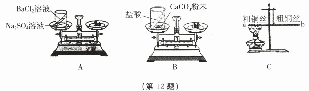 12. (11分)物质发生化学变化前后,总质量是否发生改变?是增加、减少还是不变呢?甲、乙、丙三位同学按下面的步骤进行探究: