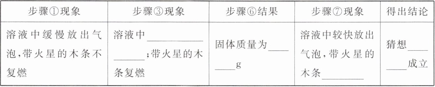 步骤⑦:步骤⑥后,将所得固体再次放入等量的过氧化氢溶液中,重复完成实验②③,并观察现象。