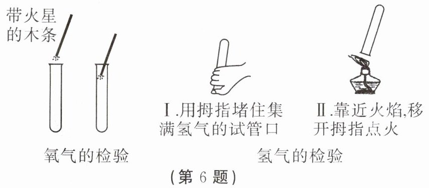 6. 如图是水的电解实验中对得到的气体检验的操作。