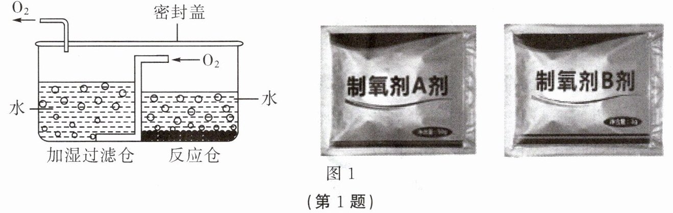 1. 学习小组开展“基于特定需求设计和制作简易供氧器”的实践活动。同学们购买了市售家用制氧机(装置如图1),并对制氧剂进行相关的探究。