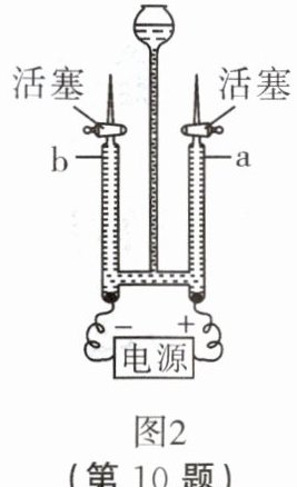 (2) 小组同学按照图2装置进行水的电解实验,观察到玻璃管$a产生气体体积为10mL$,则玻璃管$b$产生气体体积为