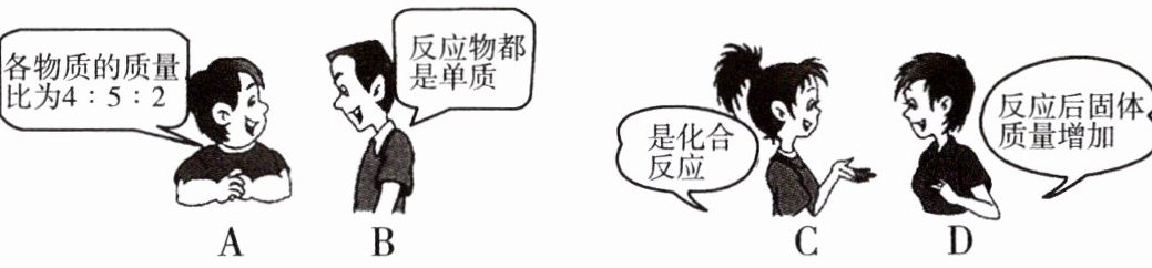 3. 关于化学方程式: $ 4P + 5O_2 \stackrel{点燃}{=} 2P_2O_5 $,四位同学表达了如图所示的四种说法,其中错误的是 (