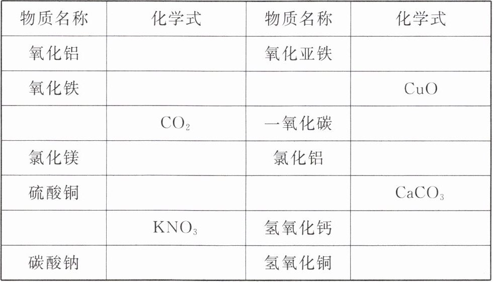 Al₂O₃ FeO Fe₂O₃ 氧化铜 二氧化碳 CO MgCl₂ AlCl₃ CuSO₄ 碳酸钙 硝酸钾 Ca(OH)₂ Na₂CO₃ Cu(OH)₂