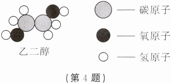 4. 乙二醇可用于生产汽车防冻液,其分子的微观结构示意图如图所示,下列有关乙二醇的说法正确的是(