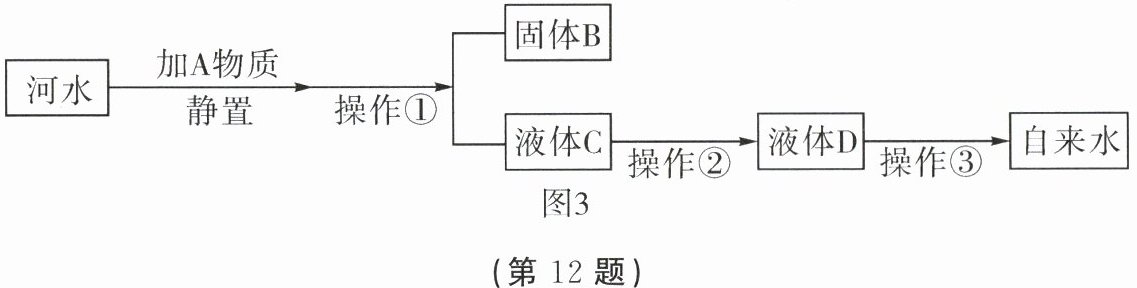 小弘同学收集到一瓶浑浊的河水,模拟自来水厂水的净化过程,其实验流程如图3: