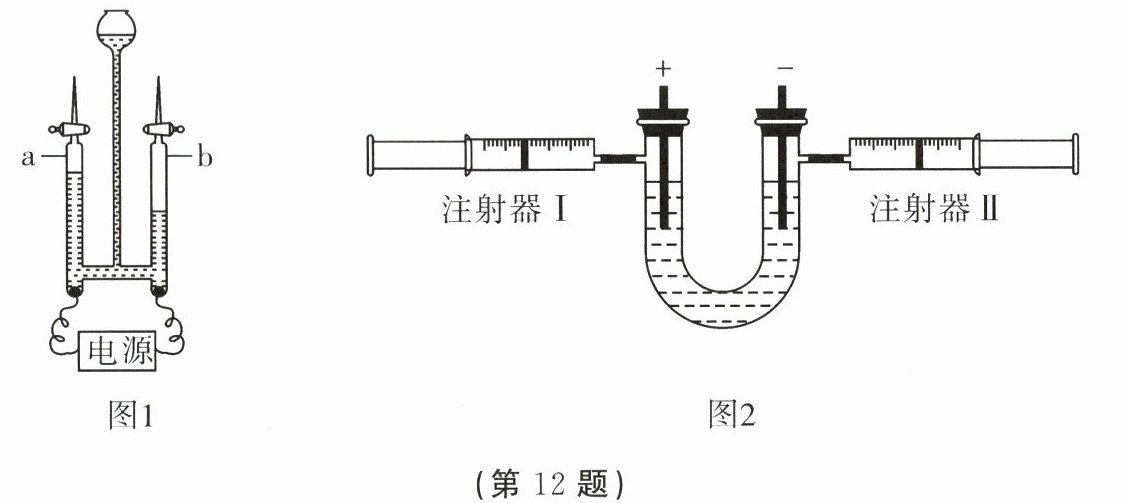 (2)如图2是电解水实验的改进装置,反应前注射器活塞均在0刻度处,反应一段时间后,如果注射器Ⅰ活塞移动至4 mL刻度处,则理论上注射器Ⅱ活塞应移动至