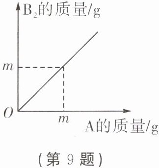 9. 在化学反应 $2A + B_{2}= 2AB$ 中,$A$ 与 $B_{2}$ 反应的质量关系如图所示,若 $6g$ $A$ 和 $8g$ $B_{2}$ 充分反应,则生成 $AB$ 的质量为(