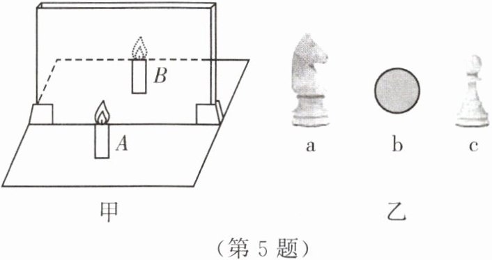 。(5) 为了探究平面镜所成的像左右是否相反,应该选用图乙中的