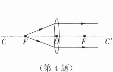 6. 将一凸透镜正对太阳,调节光屏的位置,当凸透镜光心距光屏的距离为$12\ cm$时,发现光屏上的光斑最小、最亮。由此可粗略测出这个凸透镜的焦距为