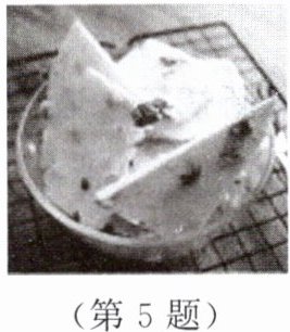 5. 如图所示的是市面上出售的一种网红食品——“炒酸奶”。将$-196^{\circ}C$的液态氮和酸奶倒入容器中,液态氮迅速汽化