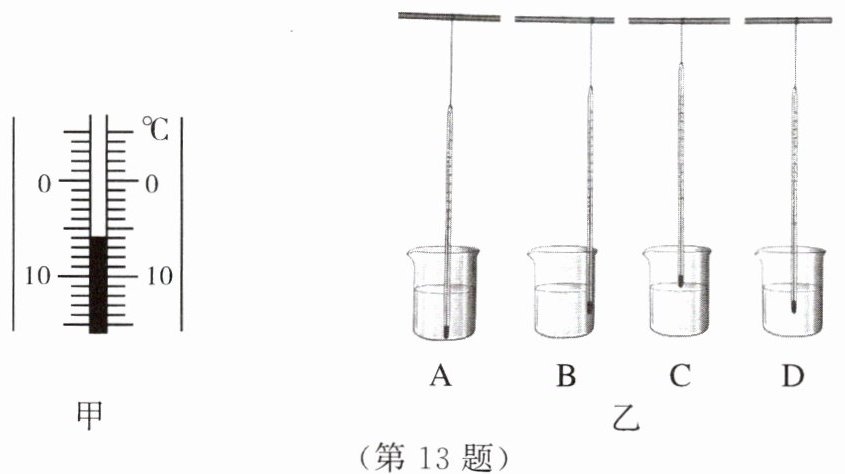 13. 如图甲所示,温度计的示数是