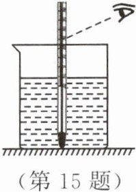 15. 如图所示,某同学想测量一杯热水的温度,选好一支量程合适的温度计后,将它放入热水中立即读数,请指出该同学操作中的错误: