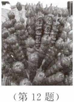 12. 如图所示,制作冰糖葫芦时,先将洗净的山楂穿在竹签上,再将一定量的白糖放入锅中加热,待白糖熔化为糖浆后,将山楂放入锅中蘸上糖浆,待山楂上的糖浆