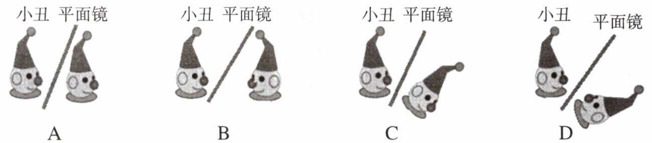 11. 下图中能正确表示小丑在平面镜中成像的是(