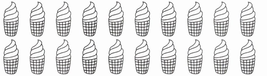 (2) 图中 20 个冰淇淋,平均分成 4 份,每份 5 个,按此圈出 4 组,每组 5 个。