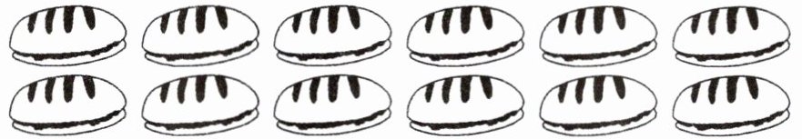 (1) 图中 12 个面包,平均分成 4 份,每份 3 个,按此圈出 4 组,每组 3 个。