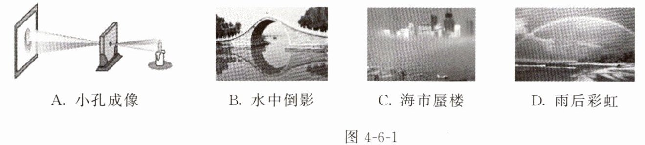 1. (2024·江苏淮安中考)如图4-6-1所示的现象由光的反射形成的是()。
