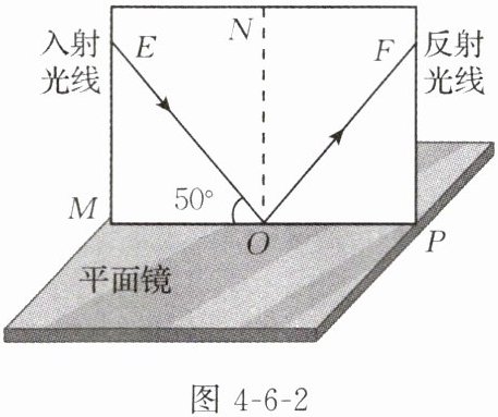 2. (四川自贡中考)小明将一个平面镜放在水平桌面上,再把一张可沿ON折转的硬纸板ENF竖直立在平面镜上,以此来探究光的反射定律。通过测量他发现此时入射光线与平面镜成50°夹角,如图4-6-2所示,则()。
