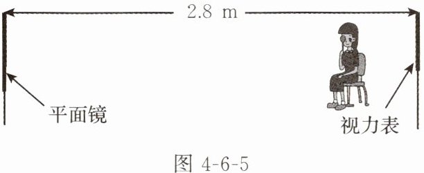 5. (宁夏中考)检查视力时要求被检查者与视力表相距5m。某同学在学校医务室检查视力,由于空间有限,采用图4-6-5中的方式进行检查,她应距平面镜m。她在平面镜里看到的是视力表的(选填“实”或“虚”)像。