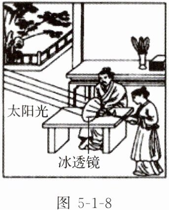 1. 【传统文化】西汉刘安的《淮南万毕术》中有记载:“削冰令圆,举以向日,以艾承其影,则火生。”其描述的现象如图 5 - 1 - 8 所示,下列说法正确的是(