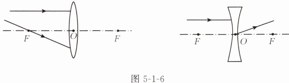 5. 请完成如图 5 - 1 - 6 所示的光路图,画出对应的折射光线或入射光线。