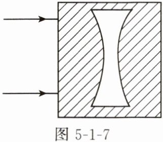 6. 如图 5 - 1 - 7 所示,透明玻璃砖内有一个呈双凹面(球面)的空气泡,一束平行光经过此玻璃砖,将会(