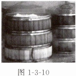 5. 用蒸笼蒸馒头(如图1-3-10所示),是上层蒸格中的馒头先熟还是下层蒸格中的馒头先熟呢?小明仔细观察后发现:高温的水蒸气经过多层蒸格向上升,遇到较冷的上层蒸格时,大量水蒸气发生