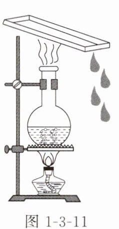 7. 关于如图1-3-11所示的“观察水蒸气液化”实验(夹金属盘的夹子未画出),下列说法不正确的是(