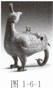 1. (山西中考)西周晋侯鸟尊(如图 1-6-1 所示)是中国青铜器中罕见的珍品,是山西博物院的镇院之宝。制作鸟尊等青铜器时,先用泥土制成“内范”,在其外部涂适当厚度的蜡,将蜡雕刻成所需形状,称之为“模”,然后在“模”的外面用泥土制成“外范”。通过加热使蜡液流出形成空腔(模具),在空腔中倒入青铜液,待青铜液冷却后,打碎“外范”和“内范”,就得到与“模”一样的青铜器。下列分析正确的是(