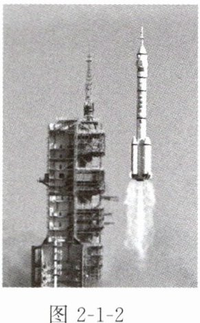 2. 【时代科技】北京时间 2025 年 4 月 24 日,搭载神舟二十号载人飞船的长征二号 F 遥二十运载火箭在酒泉卫星发射中心点火发射,约 10 min 后,神舟二十号载人飞船与火箭成功分离,进入预定轨道,航天员状态良好,发射任务取得圆满成功。图 2 - 1 - 2 是火箭发射升空的过程瞬间情景,下列说法正确的是(