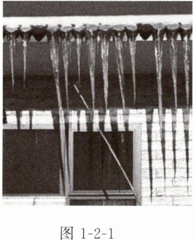 2. 图1-2-1中的冰柱俗称“冰溜子”,是我国北方冬季的一种自然现象。冰柱产生的过程是雪先