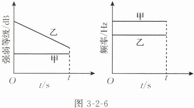 3. 监测器离发声体甲、乙的距离相同,测得甲、乙发出声音的数据如图 3-2-6 所示。则 $0 \sim t$ 这段时间内发声体甲(