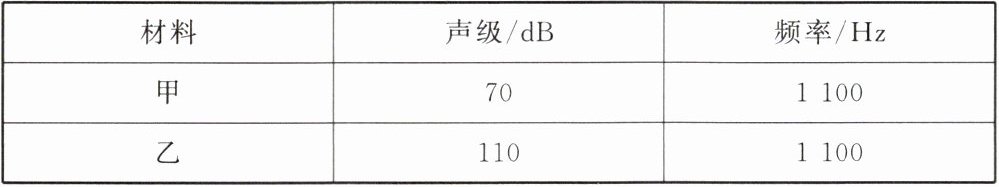 4. 如图 3 - 3 - 4 所示,监测器在同一地点监测同一声源发出的声音。测得相同的声音在相同厚度、不同隔音材料包裹后传出声音的特性,如下表所示。甲、乙材料相比(