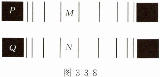 (4)若用疏密相间的竖线表示两列频率相同的声波,如图 3 - 3 - 8 所示,P、Q 表示密部,M、N 表示疏部,则两列声波相遇时,消声效果最明显的情况是(填选项字母)。