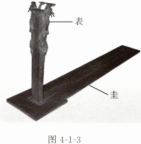 1. 【传统文化】我国古代的天文观测一直居于世界领先地位,古代天文学家们发明了许多先进的天文观测仪器,其中圭表就是典型。圭表(如图4-1-3所示)包括圭和表两部分,正南正北方向平放的测定表影长度的刻板叫作圭,直立于平地上的标杆或石柱叫作表,圭和表相互垂直。我国古代依据圭表正午时表影长度可以推定二十四节气,而表影是由光的