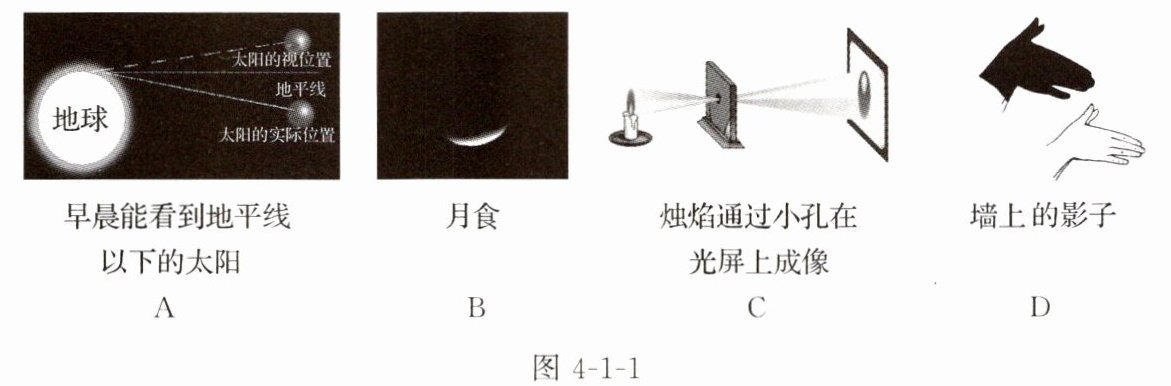 5. 如图4-1-1所示的光现象不能用光的直线传播知识解释的是(
