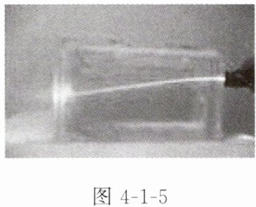 7. 在盛水的玻璃槽中倒入较多的白糖。隔天,将一束激光射入糖水中,拍摄到如图4-1-5所示的照片。