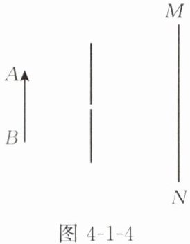6. 如图4-1-4所示,小孔前有一物体AB,请画出AB经过小孔成像的光路图,并在光屏MN上标出AB所成的像。