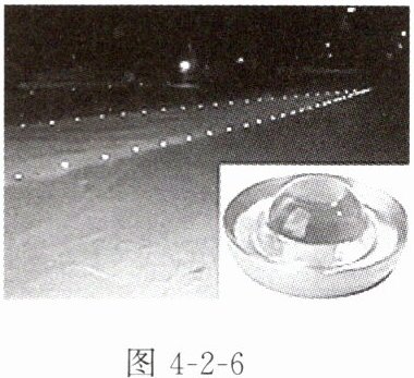 1. 为了夜间行车安全,交通管理部门在特殊区域每隔 $ 2m $ 安装了一个叫“夜精灵”的元件,如图 4 - 2 - 6 所示。该元件是由凸起的纯玻璃制成的,夜间汽车行驶时,在灯光的照射下,司机能看到附近地上的“夜精灵”亮起来。下列几种元件的工作原理与“夜精灵”完全不同的是()。