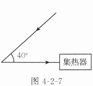 3. 太阳能发电厂需要利用平面镜将太阳光反射到集热器上。如图 4 - 2 - 7 所示,为了使与水平方向成 $ 40^{\circ} $ 角的太阳光水平反射到集热器上,平面镜的反射面和水平面应成