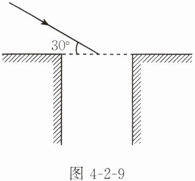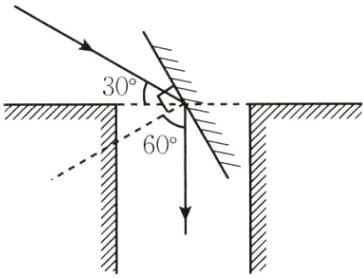 5. 如图 4 - 2 - 9 所示,科学家探测时,想要利用一块平面镜使此时的太阳光竖直射入井中,请你通过作图标出平面镜的位置,并标出反射角的度数。