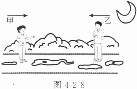 4. 雨后天晴的夜晚,人在月光下行走,如图 4 - 2 - 8 所示。为了不踩到地上的积水,甲同学迎着月光走,应走