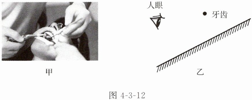 (选填“平面镜”或“牙齿”)。请你在图 4 - 3 - 12 乙中画出人眼看到平面镜中牙齿的光路图,保留作图痕迹。