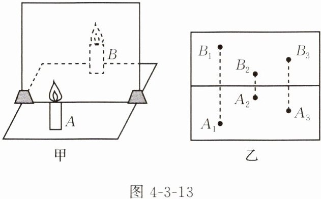 (2)改变蜡烛 A 的位置,进行三次实验。用直线将物体和像的位置连接起来,如图 4 - 3 - 13 乙所示,发现像和物体的连线与镜面