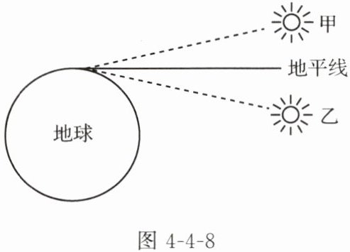 (选填“反射”或“折射”)所成的像,太阳实际在图 4 - 4 - 8 中的乙