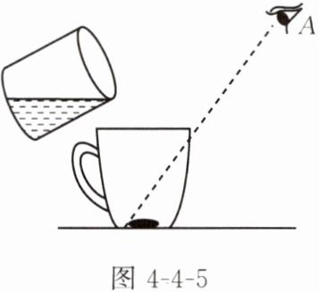 6. 小明给弟弟变了一个魔术,他将装有一枚硬币的杯子放在弟弟面前,如图 4 - 4 - 5 所示,弟弟在 $A$ 处看不到硬币,这是因为光沿