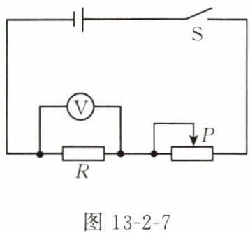 7. 如图13-2-7所示,电源电压恒为6V,定值电阻R的阻值为5Ω,电压表的量程为0~3V,滑动变阻器上标有“10Ω 0.5A”的字样。为了保证电路安全,下列说法不正确的是(