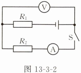 3. 如图 13 - 3 - 2 所示,电源电压恒为 9 V,闭合开关 S 时,电压表的示数为 5 V,电流表的示数为 0.6 A,通电 10 s,电阻 $ R_1 $ 产生的热量为