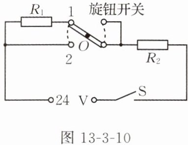 10. 图 13 - 3 - 10 是汽车座椅的加热电路,$ R_1 $、$ R_2 $ 是电热丝,旋钮式开关可绕 O 点转动。若选择“低温”挡,应将开关转至位置